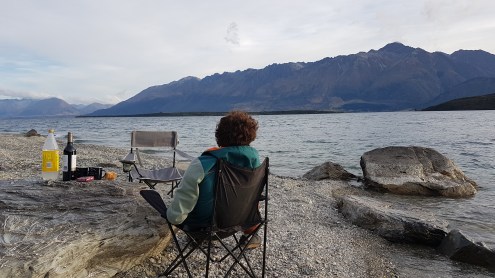 Leaving Queenstown we headed off around the lake towards Glenorchy. A picturesque drive, especially on this clear evening. Parked up at Little Stony Creek free Campsite we set up our chairs by the lake and drank wine out of mugs watching the sunset. A beautiful and perfectly quiet spot for the night. Just don’t try and park on the stony beach, you will get stuck…