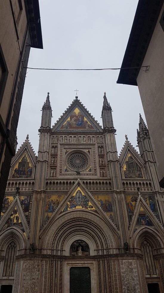 Our first stop today was in Orvieto, a little village on a hill with some amazing spots to see. The first part of the town we explored was quiet and tranquil without a person in sight and with beautiful views over the countryside. We soon moved into an area with lots of great shopping and music playing from speakers throughout the old streets. Then we moved into an area with many religious monuments including an enormous cathedral with striped walls and a stunning facade. The buildings we have seen so far are absolutely stunning,