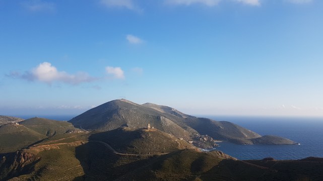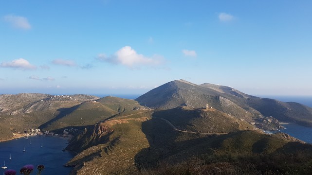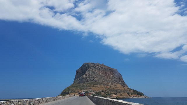 We continued driving along the coast then through the mainland to Menemvasia. Here on a tiny little peninsula there is a large rocky outcrop connected to the mainland by a tiny stretch of land 200m long. On top of this there are ruins from an old medieval fortress.