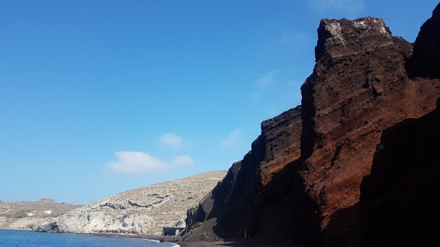 Coming into Santorini it was far from what I expected. Somehow in my head I had pictured a luxury tropical island with beautiful beaches and areas of forest, so I guess much like the other islands I have been to. But this was definitely something different. Instead of beaches you have steep cliffs of volcanic rock. As for the trees, there are next to none over the whole island, instead there just miles of rocks and sand with a few grasses sticking between them. However despite the burnt and baron landscape somehow farmers have still managed to get some things to grow. It is definitely unlike anything I have seen before, but I guess I have never been on the top of an underwater volcano before, or any volcano for that matter.
