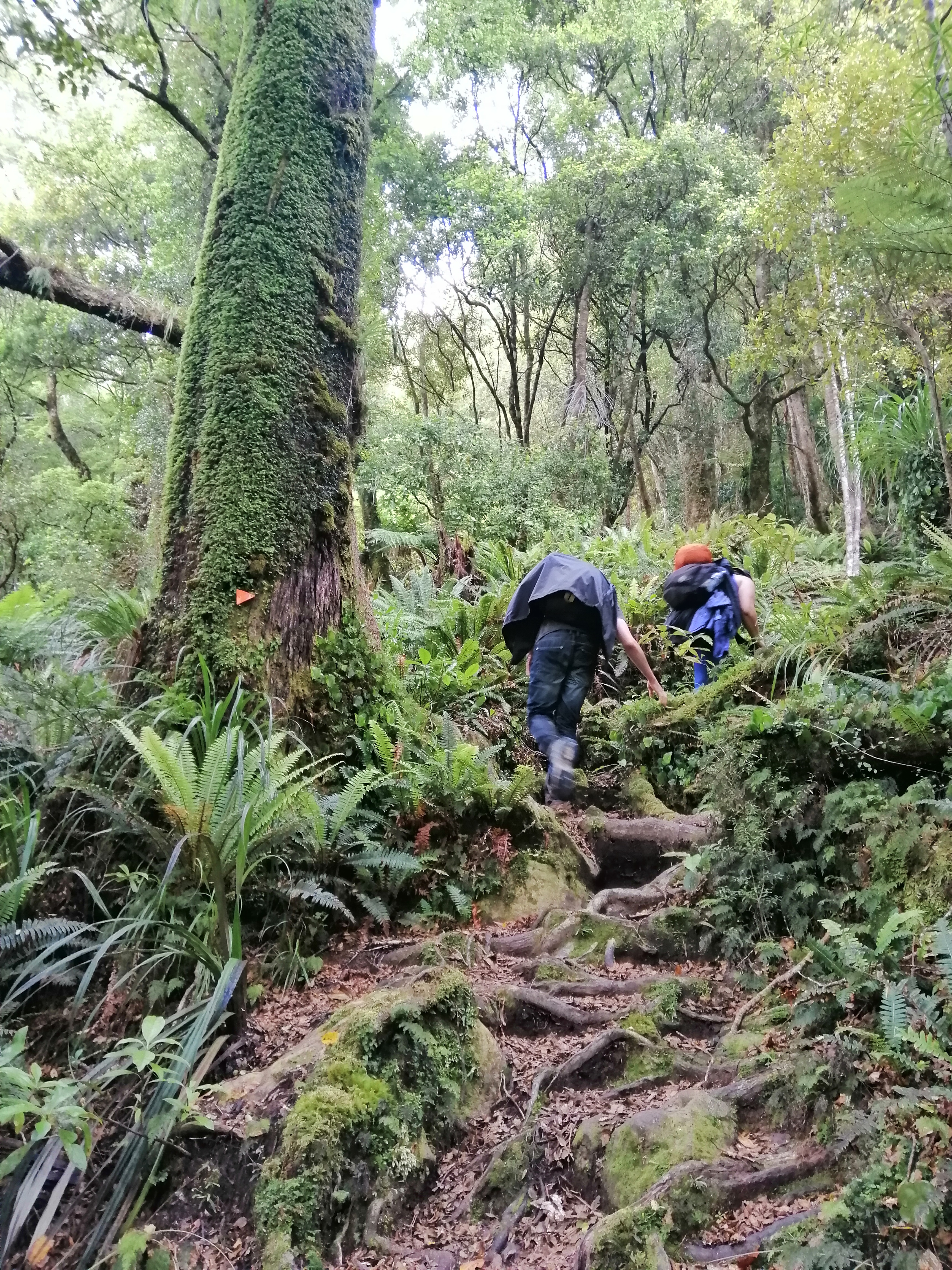 The hike was naturally split into three segments. The first followed a mountain road up to the Tahurangi Lodge and then up a few stairs to where the mountain track becomes a pile of loose rock. I’d say most people can make it to this point, the trail is well put together and the views are epic so totally worth the gradual climb even if you are not too confident hiking.