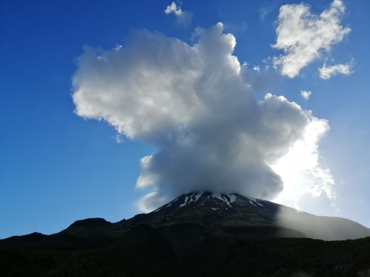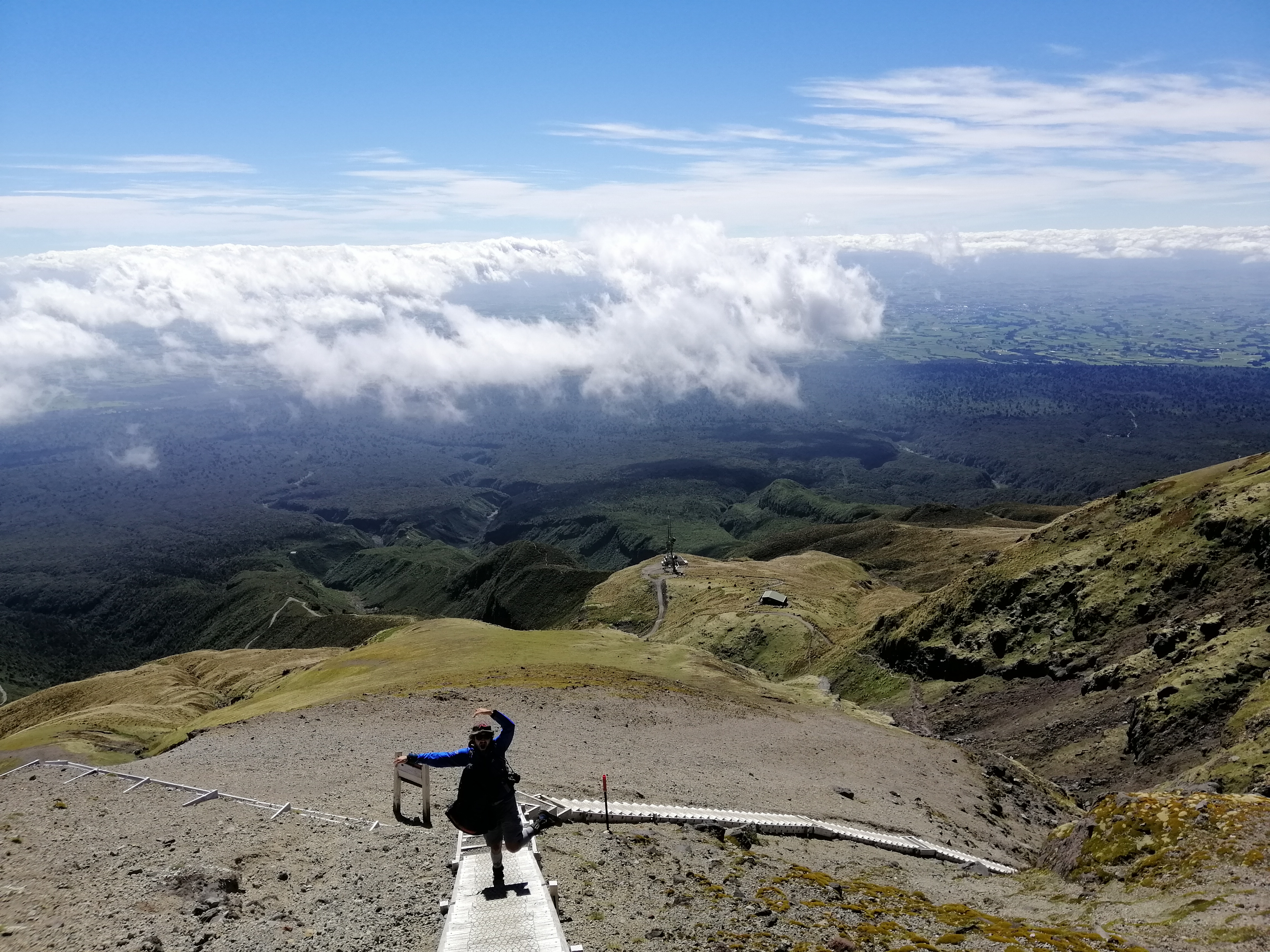 A glimpse was all we needed before the cloud cover returned telling us it was time to race back to the parking lot. We had heard they were very strict on parking so we didn’t want to take any risks of a big fine! The run back was a lot more fun than the jog in. The hoards of people had all passed through so it was pretty much just us on the trail, a rare event for this track it seems. We could really take in the scenery and to be honest the cloud and fog was pretty nice, cooling us down and creating a bit of mystery to what is already such a unique area. Racing the clock the last couple of km’s turned into a bit of a tired person’s sprint getting us back to the car with a couple of minutes to spare! The parking warden’s booth was empty as was most of the car park so we could have taken a bit more time it seems, but meant we had the rest of the day to have a swim, relax and get prepared for the next hike on the list – Mount Taranaki.
